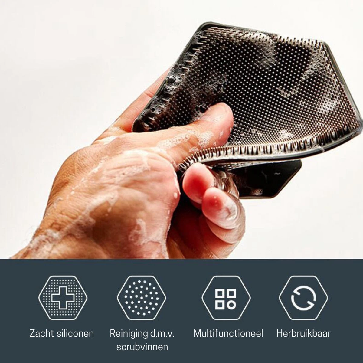 De bovenkant van het siliconen badspons is op zo een manier ontworpen dat deze niet uit uw handen kan glippen. Dit in combinatie met het ergonomische handvat zorgt voor een zorgeloos en makkelijk gebruik.