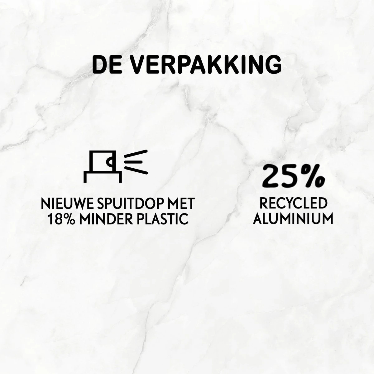 - De verpakking bevat 25% recycled aluminium