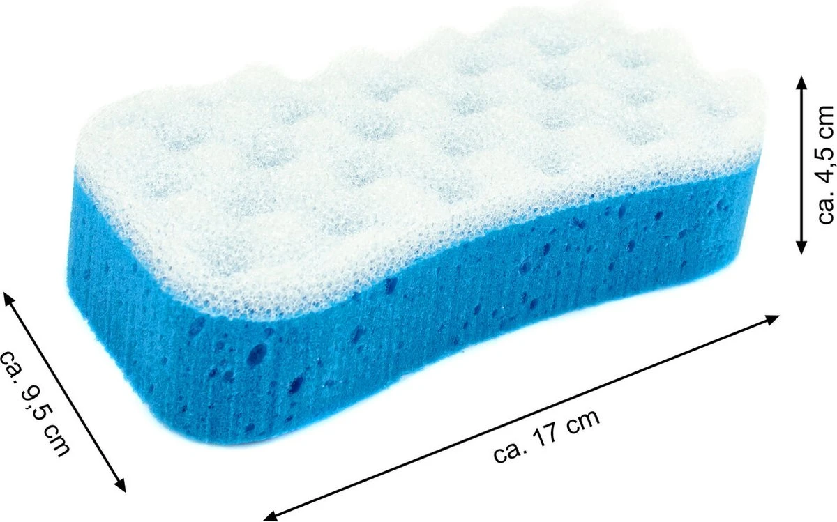 Afmeting van de sponzen is : L 17cm x B 9,5 cm x H 4,5 cm.