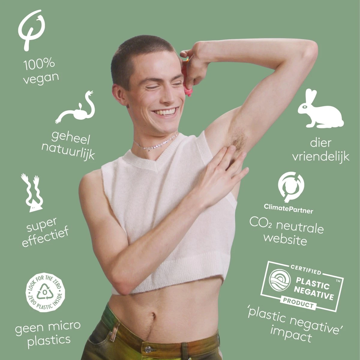 • Geen aluminium, geen kunstmatige geurstoffen, geen vage chemicaliën, geen alcohol