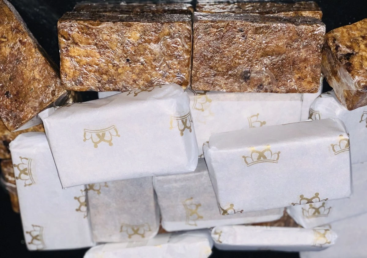 Productbeschrijving: 100% volledig biologisch Afrikaanse zwarte zeep afkomstig uit Ghana.