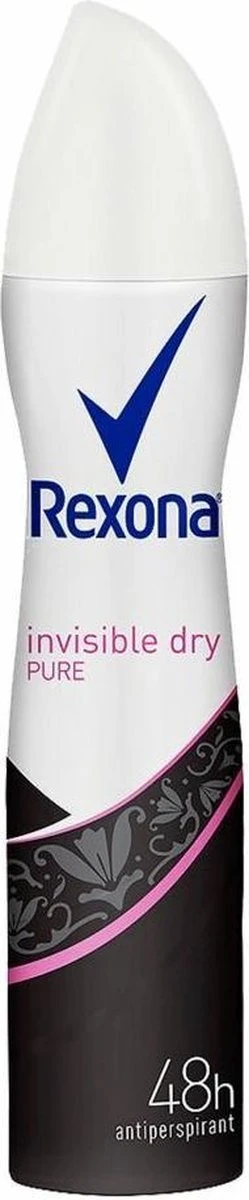 Rexona Women Invisible Pure anti-transpirant deodorant is geformuleerd met onze beste geen-strepen formule, die 48 uur bescherming biedt tegen zweet, geur en vlekken op jouw kleding. De beste fashion accessoire? Geen witte strepen. Sommige anti-transpirant deodorants kunnen zich vermengen met zweet en de natuurlijke oliën van je lichaam, wat vlekken veroorzaakt: witte vlekken op zwarte kleding, gele vlekken op wit. Niet met Rexona Invisible Pure. Het beschermt je niet alleen tegen zweet, het helpt je ook om je kleding te beschermen tegen strepen en vlekken, dus je kunt je direct na het aanbrengen meteen klaarmaken voor de dag. Rexona Women anti-transpirant deodorant bevat Rexona’s innovatieve MotionSense technologie, die je de hele dag door fris laat voelen, door een uitbarsting van frisse geur wanneer je die het meest nodig hebt. Het werkt als volgt; unieke microcapsules hechten zich aan het oppervlak van jouw huid. Wanneer je beweegt, breekt wrijving de microcapsules en geven ze meer geur vrij. Dus hoe meer je beweegt, hoe meer het beschermt. Dus, ervaar de hele dag door frisheid en 48 uur bescherming van zweet, geur en vlekken van ’s morgens tot ’s avonds met Rexona Women Invisible Pure anti-transpirant deodorant, jouw nummer één fashion accessoire. Rexona, daar kun je op vertrouwen. Hoe te gebruiken: schud eerst de Rexona Women Invisible Pure deodorant bus. Houd het dan 15cm van je onderarm en spray het gelijkmatig in een goed geventileerde ruimte. Vermijd contact met de ogen en een beschadigde huid. (ethylalcohol)