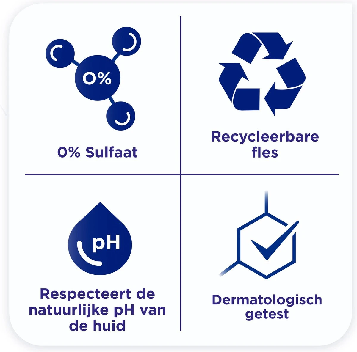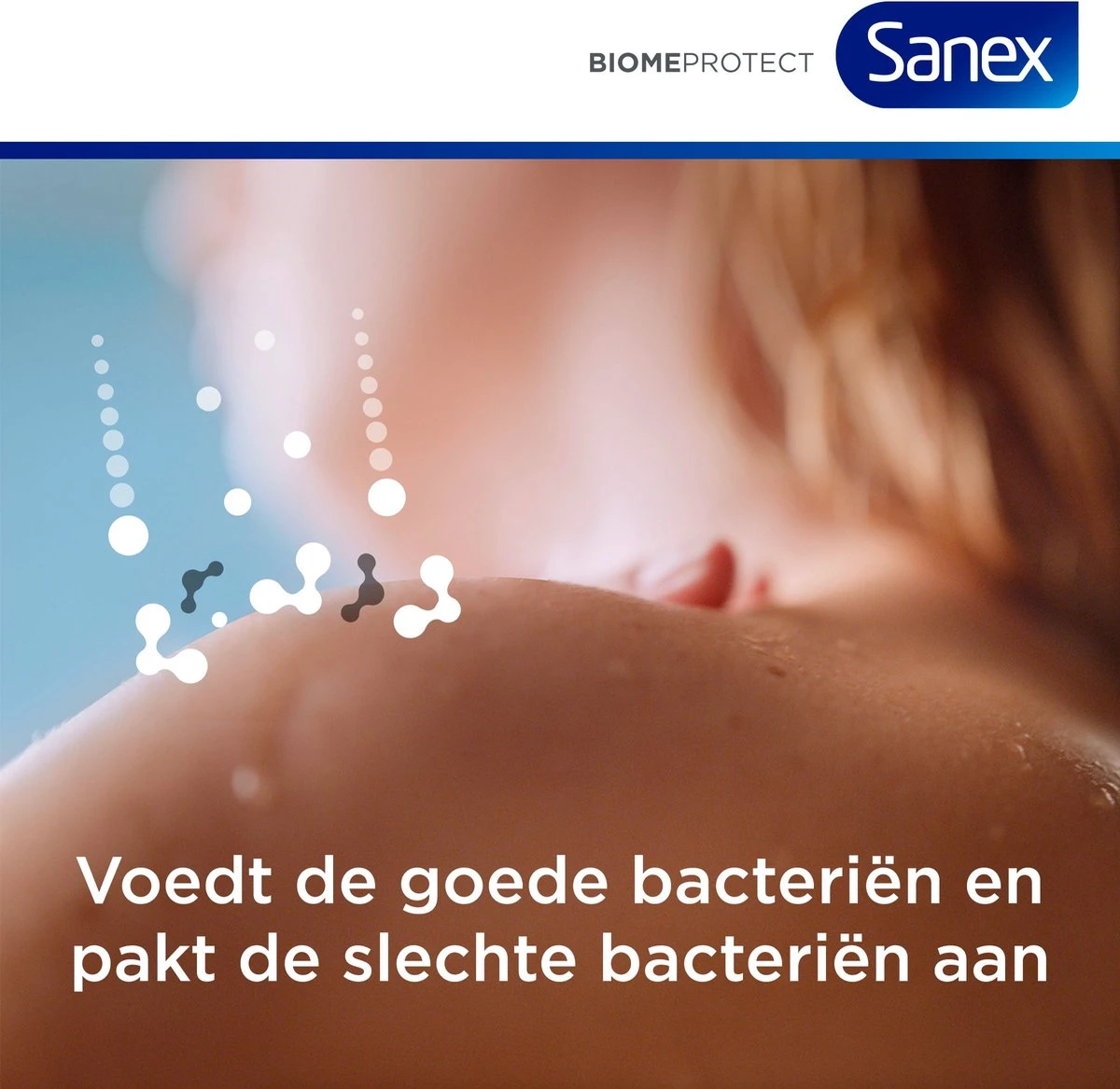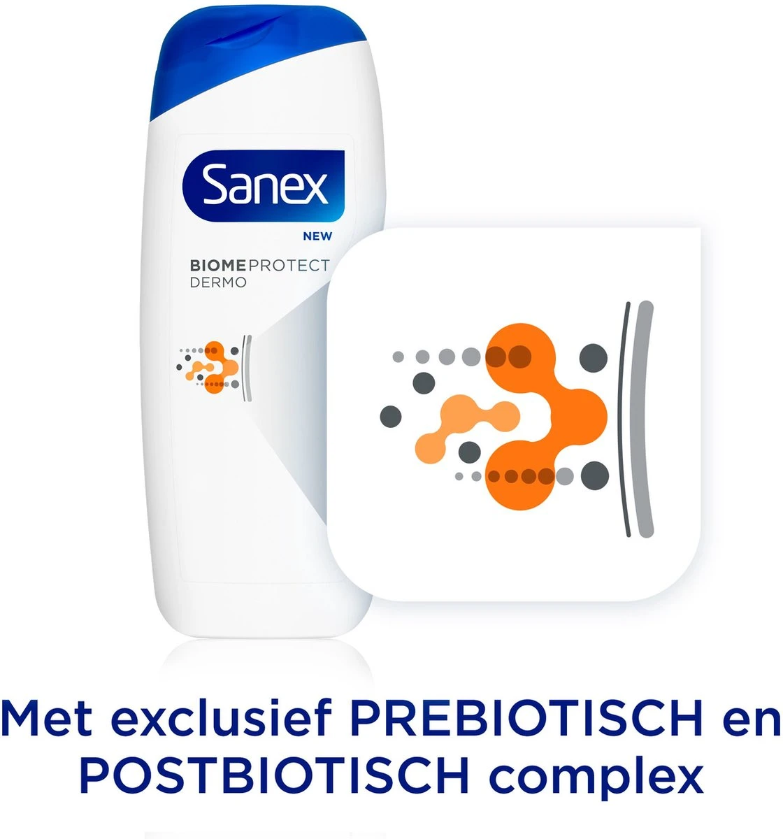Zorg voor je gevoelige huid en houd haar gezond met Sanex BiomeProtect Dermo Sensitive douchegel. Deze bodywash is met zorg ontwikkeld om je gevoelige huid in alle zachtheid te reinigen en te kalmeren en haar natuurlijke weerstand te versterken. Onze bodywash biedt microbioom huidverzorging door de goede bacteriën op de huid te voeden en de slechte te bestrijden, waardoor je huid beter tegen aanvallen van buitenaf bestand is. De geavanceerde formule bestaat uit een unieke combinatie van voedende bestanddelen om het microbioom van je huid – je eerste natuurlijke beschermlaag – te versterken. Sanex BiomeProtect Dermo Sensitive douchegel bevat een exclusief prebiotisch en postbiotisch complex om de goede bacteriën op de huid te ondersteunen en de natuurlijke huidbarrière te hydrateren en versterken. Bovendien is het dermatologisch getest, het respecteert de natuurlijke pH van je huid en het bevat 0% sulfaat om je huid te helpen zich van haar beste kant te tonen.