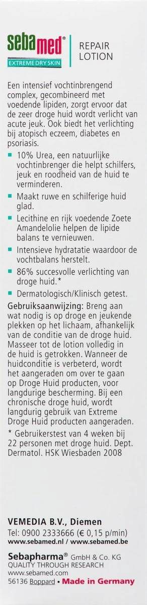 Bodylotion voor de extreem droge huid, bij eczeem, diabetes en psoriasis